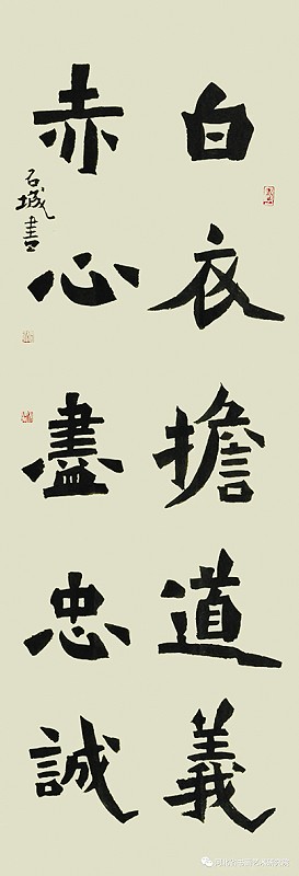 他在不断践行艺术生活的体验中,传承中国书法历史文脉,循序渐进,融会贯通,综合比较,取精用宏,丰富自己。就象辛勤的蜜蜂,采撷百花之粉,酿造自己的人品、书品、艺术之品。