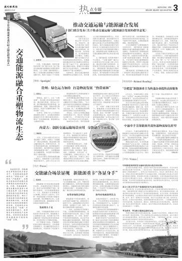 □ 郭冀川 日前交通运输部、国家发展改革委等十部门联合发布《关于推动交通运输与能源融合发展的指导意见》 (以下简称《指导意见》)